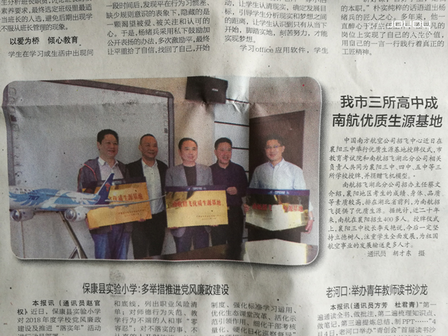 我市三所高中成南航優(yōu)質(zhì)生源基地