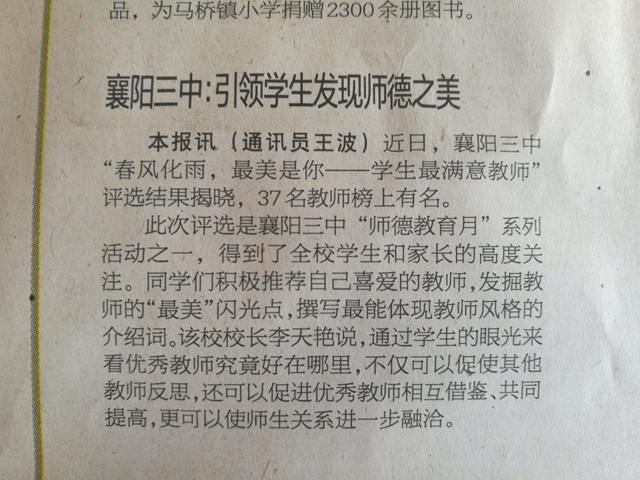 襄陽(yáng)三中:引領(lǐng)學(xué)生發(fā)現(xiàn)師德之美