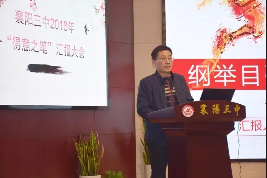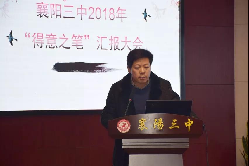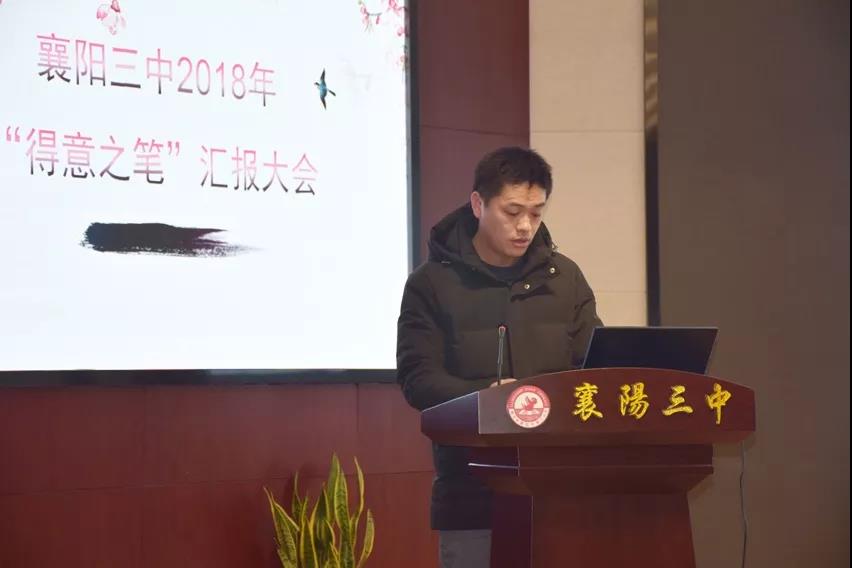 1月18日下午,襄陽(yáng)三中在新校區(qū)聞道廳召開2018年"得意之筆"匯報(bào)會(huì),與會(huì)的有學(xué)校領(lǐng)導(dǎo)班子和全體教師,會(huì)議由紀(jì)委書記陳斌主持。